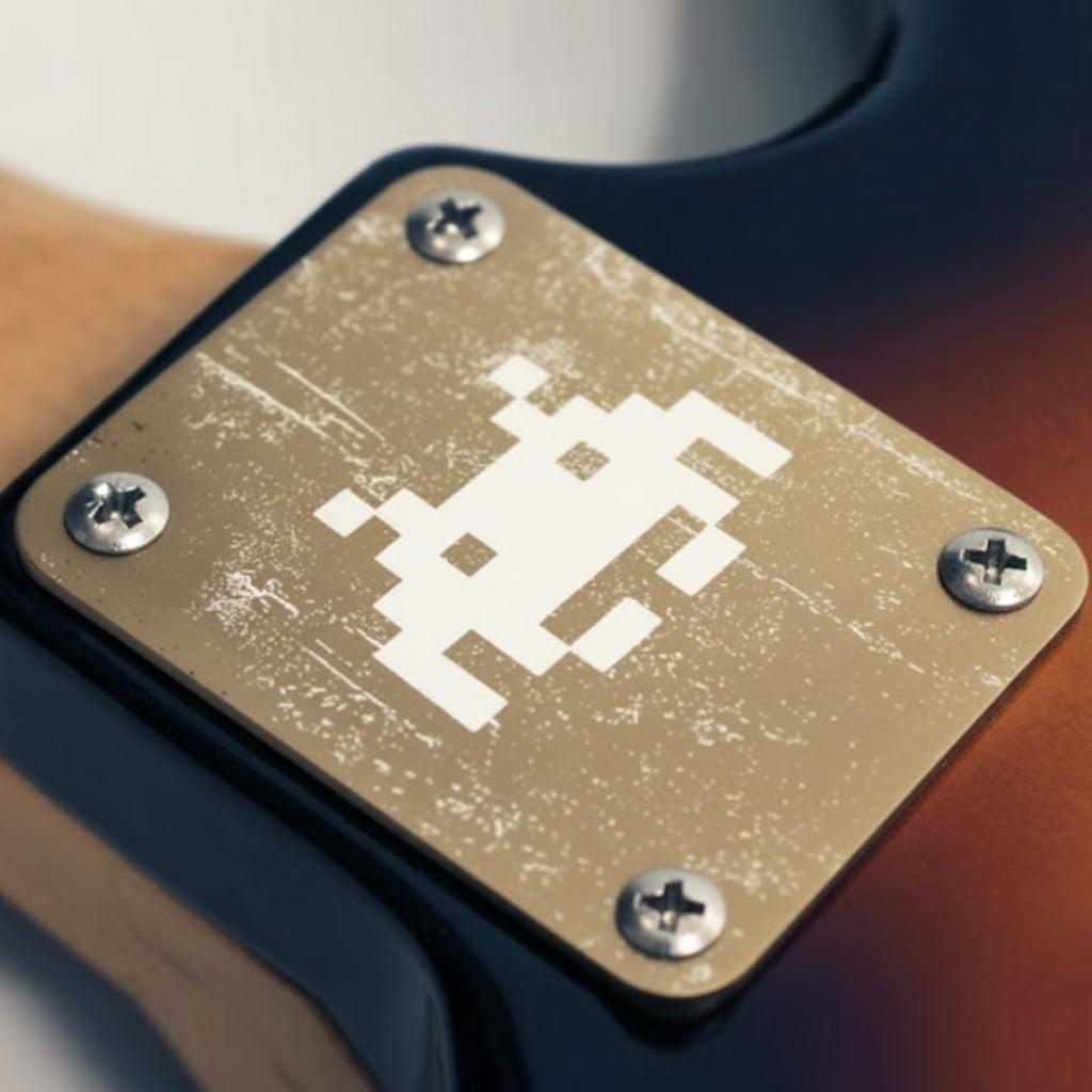 Donnez un style unique et original à votre guitare ou basse grâce à cette plaque de manche personnalisée. Gravée avec précision du superbe logo lo-fi des Invaders, elle arbore une finition légèrement vieillie qui lui confère un charme particulier. Réalisé par Hoverguitar ® . ____________________________________ . Caractéristiques principales : ✅ Livraison internationale sous 24 heures ouvrables. ✅ Toutes les pièces sont méticuleusement gravées dans notre atelier situé au nord de Paris, en France. ✅ Plaque de manche Fender® de qualité supérieure avec finition chromée ✅ 4 vis de taille Fender® ✅ Amélioration laser par Hoverguitar ®. ✅ Édition Envahisseurs.